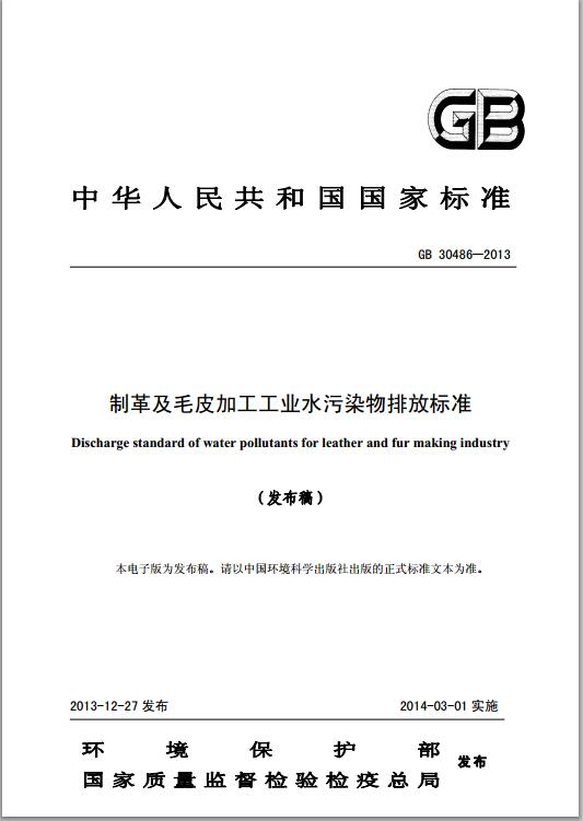 制革及毛皮加工工業(yè)水污染物排放標準( GB 30486—2013 )