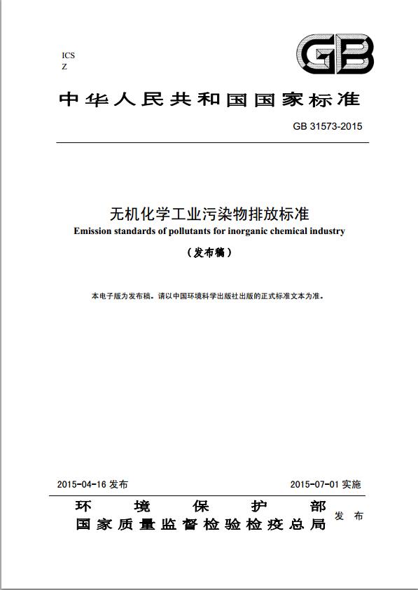 無機化學工業(yè)污染物排放標準(GB 31573-2015)