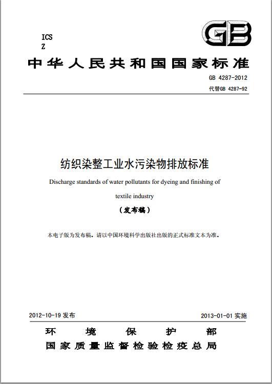 紡織染整工業(yè)水污染物排放標準(GB 4287-2012)