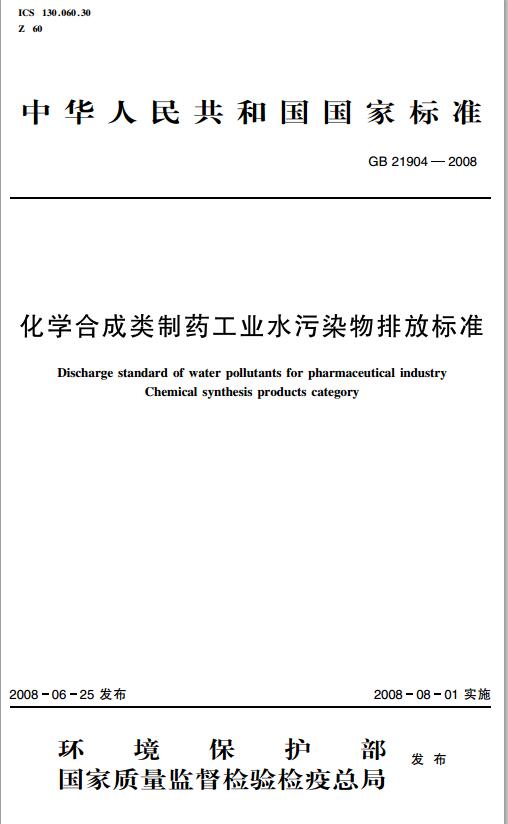 化學合成類制藥工業(yè)水污染物排放標準(GB 21904-2008)