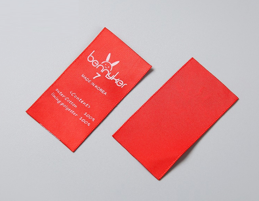 織嘜標(biāo)簽:是服裝服飾上使用特別廣泛的一種商標(biāo),是根據(jù)圖形的色彩而選用不同顏色的紗線在織標(biāo)機(jī)上直接織出來的一種商標(biāo),優(yōu)點(diǎn)是不掉色,因?yàn)槭峭耆椩谏厦娴模辛Ⅲw感,織的方式多樣,有檔次感,缺點(diǎn),周期長,對顏色要求嚴(yán)格的需要紗線染色,所以對起訂量有要求。